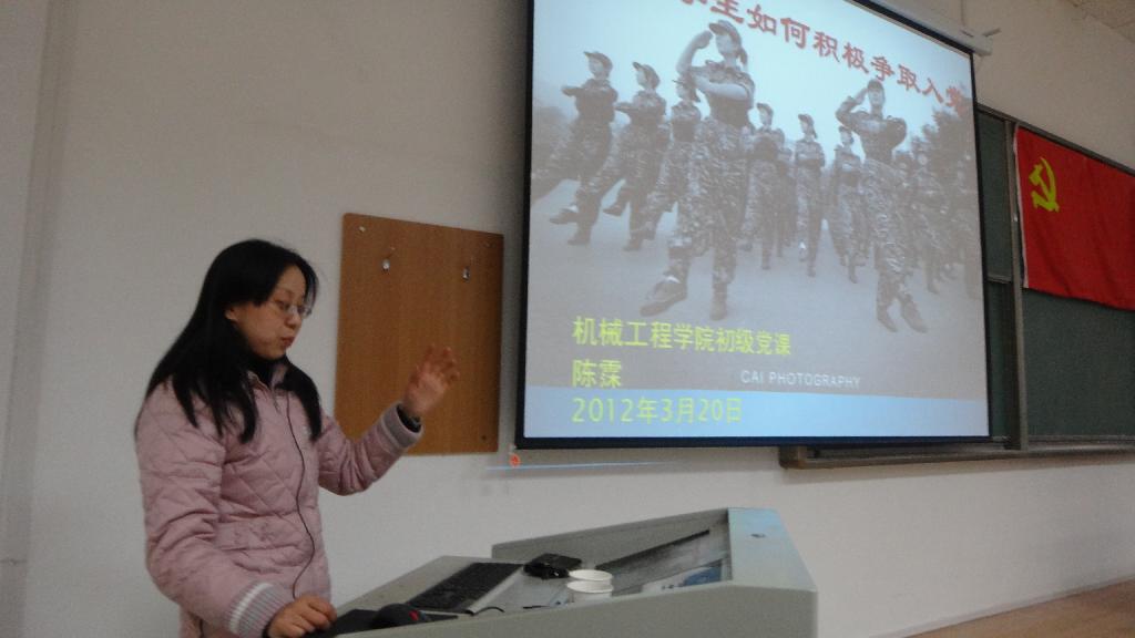 3月20日,jdb电子第三十九期初党培训班举行第三次授课,分团委书记陈霂担任主讲。授课内容为青年学生如何积极争取入党。