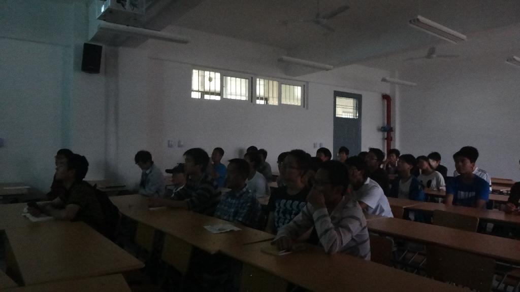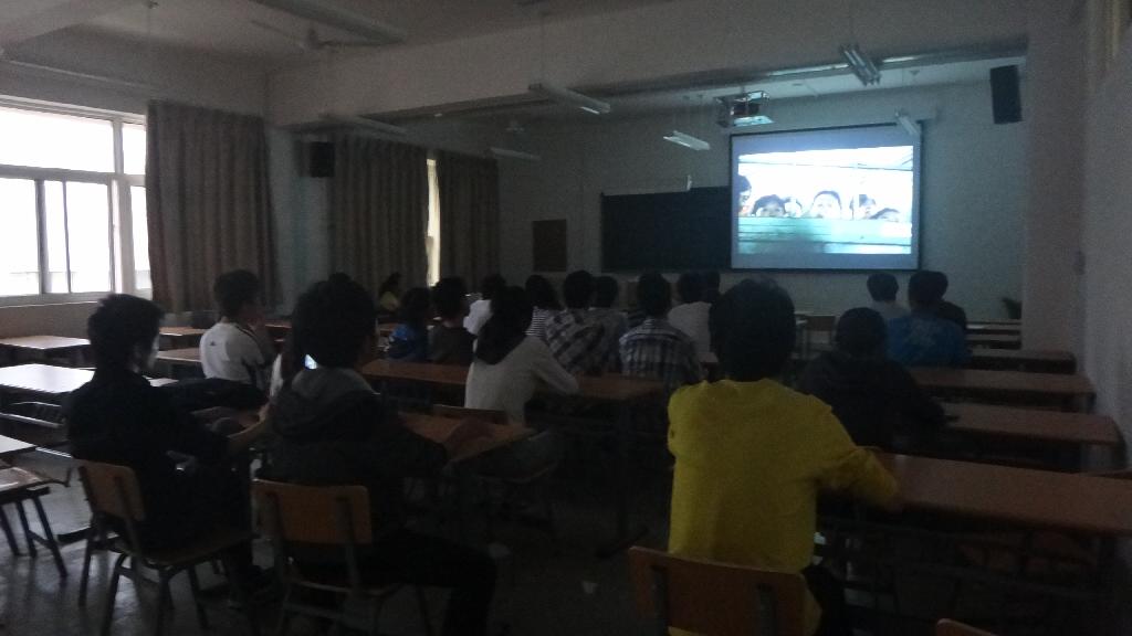 同学们专心致志地看着影片