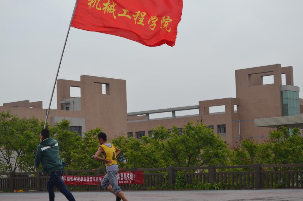 4月25日下午,在田径场进行了男子10000米跑步比赛,2013级李宏卫取得万米长跑第四名。