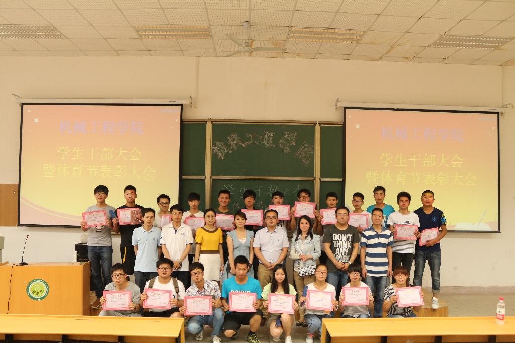 按照会议流程,首先由院党委副书记李婉丽老师宣读了“jdb电子游戏官方网站关于2014年体育节的表彰决定”,共评选出10个优秀集体奖、3个集体项目优秀团队奖、10个最佳运动员和19个优秀工作者。接着,由莅临此次大会的各位老师为最佳运动员和优秀工作者颁发奖品及证书。最后,由芮智刚老师传达了学工部的近期通知。会议结束后,获奖人员邀请了莅临此次会议的老师合影留念。