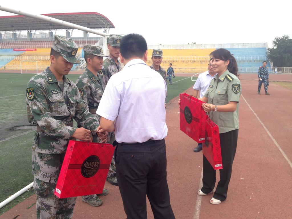 9月15日,时值中秋佳节来临之际,为表达对军训教官及学生的诚挚谢意与节日祝福,jdb电子游戏官方网站院长张传伟、院党委书记汪卫兵、院党委副书记李婉丽,以及2016级新生辅导员老师等前往学生军训场地,看望并慰问了正在参加军事训练的2016级本科学生及带训教官。