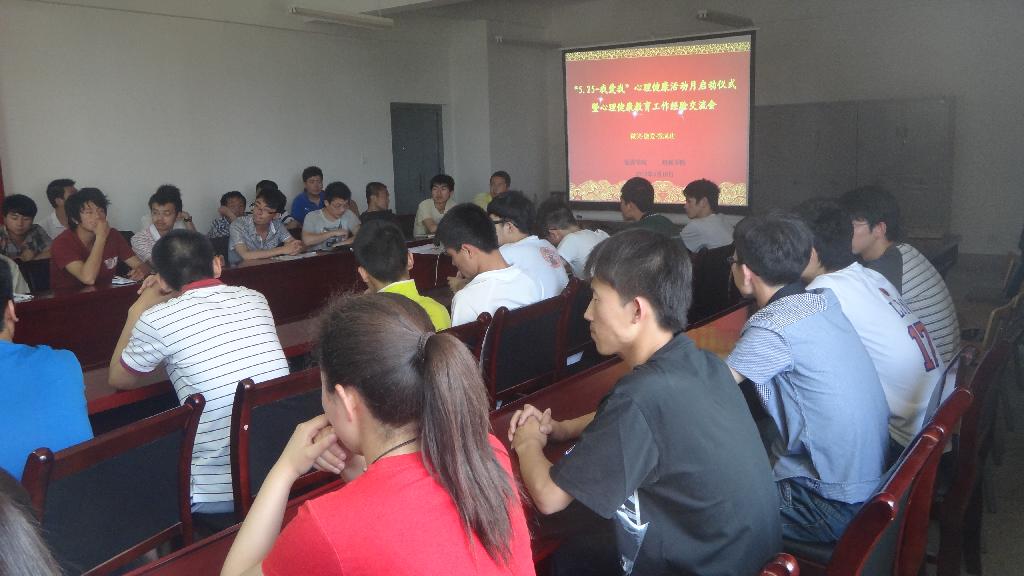 5月10日下午, 机械学院、能源学院以“微笑、微爱、微成功”为主题的 “5.25”大学生心理健康活动月启动仪式暨心理健康教育工作经验交流会在能源学院会议室举行。此次活动由能源学院分党委副书记高朕栋主持,学工部副部长苏陆岭、机械学院分党委副书记汪卫兵、学工部心理咨询中心主任戴悦、两学院心理健康教育工作负责人、学生心理委员代表70余人参加了活动。