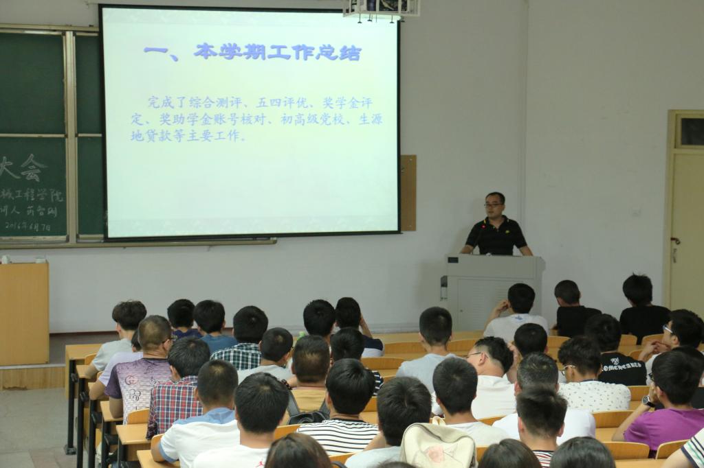 2016年6月7日下午16:00,在临潼校区9教101教室,机械学院召开2015级机电、车辆、工业、机械(卓越)专业年级大会。会议由2015级辅导员芮智刚主持。