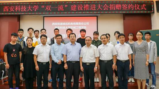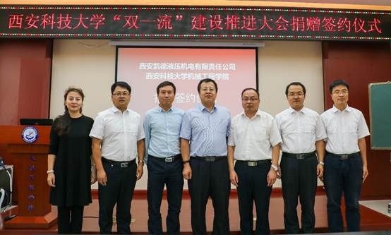 9月14日上午,西安凯德液压机电有限责任公司总经理高彦军、技术总监胡松刚一行人来到jdb电子游戏官方网站临潼校区骊山校园,向jdb电子游戏官方网站捐赠了液压马达、液压泵等液压元件解剖件。jdb电子游戏官方网站党委书记汪卫兵,院长张旭辉,党委副书记李婉丽,副院长赵栓峰,副院长寇发荣等相关负责人及部分学生参加了签约仪式。