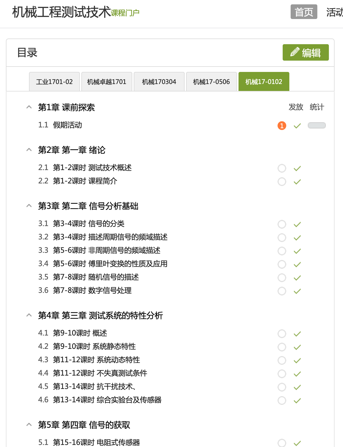 同时,在线建立《机械工程测试技术》课程,并对本学期课程进度、在线资源、各阶段教学活动进行安排。