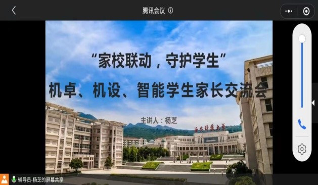辅导员班主任家长联动,凝聚育人合力。一是围绕疫情防控、心理健康教育以及线上教学等相关内容及时召开线上班会,科学指导学生做好防控,不信谣、不传谣、不造谣,加强自我管理,保持良好的精神面貌共度疫期难关。二是通过“云上家长会”、电话沟通等家校联动方式,通报学校疫情防控工作开展情况,让学生家长全面了解学校全力守护学生安全健康的各项具体措施,争取家长的理解和支持,积极配合学校共同做好学生的教育指导。截止目前,辅导员班主任和学生家长联动全面覆盖本科一至四个年级共65个班级。机械学院辅导员、班主任联动家长机制受到学院班主任、学生和家长的一致认可,大家坚信,坚持就是胜利,勠力同心,战“疫”必胜!