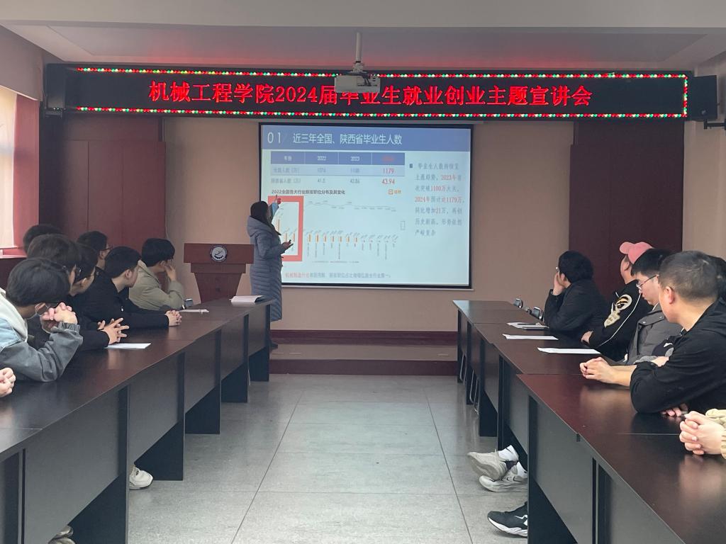 根据《陕西省教育厅关于做好 2024 届全省普通高校毕业生就业创业工作的通知》精神,为进一步落实中、省关于高校毕业生就业创业工作的决策部署。1月12日中午,jdb电子游戏官方网站组织开展2024届毕业生就业创业主题宣讲,jdb电子游戏官方网站党委副书记尹弘作了宣讲,毕业班辅导员杨芝主持,毕业班辅导员骆佳录及24届未就业毕业生共百余人参加。