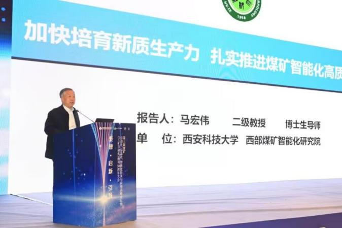 马宏伟教授就如何推进煤矿智能化高质量发展,做了题为“加快培育新质生产力 扎实推进煤矿智能化高质量发展”的特邀报告。马宏伟教授报告中阐释了新质生产力与煤炭高质量发展的重要内涵和关系,提出了煤炭行业培育新质生产力的七个重要途径,总结了煤炭行业高质量发展的“高端化、智能化、绿色化、融合化”四大发展策略。并结合团队研究成果,提出了“采煤就是采数据、掘进就是掘模型、运输就是运流量、拣矸就是拣图像”的煤矿智能化学术思想,为培育煤矿新质生产力和煤矿智能化发展指明研究方向。