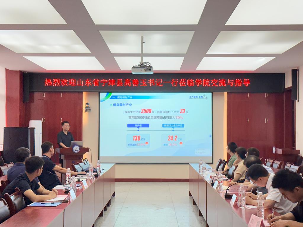 6月19日下午,山东省宁津县县委书记高善玉,宁津县宣传部长王逢阳,宁津县经济合作中心党组书记、主任方康,宁津县经济合作中心办公室主任史海港一行4人赴jdb电子游戏官方网站到jdb电子游戏官方网站交流座谈。jdb电子游戏官方网站院长曹现刚,副院长毛清华、车辆工程系主任高怀斌,机械电子系支部书记刘鹏及教师代表参加座谈会。座谈会由毛清华主持。