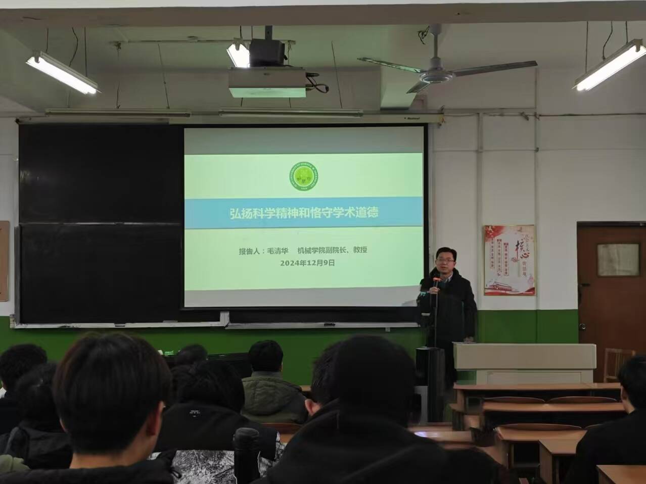 为在进一步强化研究生科学道德与学风建设,为2024级博硕士新生铺设坚实的科研学习基石,同时深化对学术道德规范的认知,共同营造更为纯粹与浓厚的学术氛围,jdb电子游戏官方网站于12月9日下午,在雁塔校区主楼401教室,举办“科学精神与学术道德”主题报告会的第二讲。报告会由机械学院副院长毛清华教授主讲,全体2024级博硕士生参加了报告会。