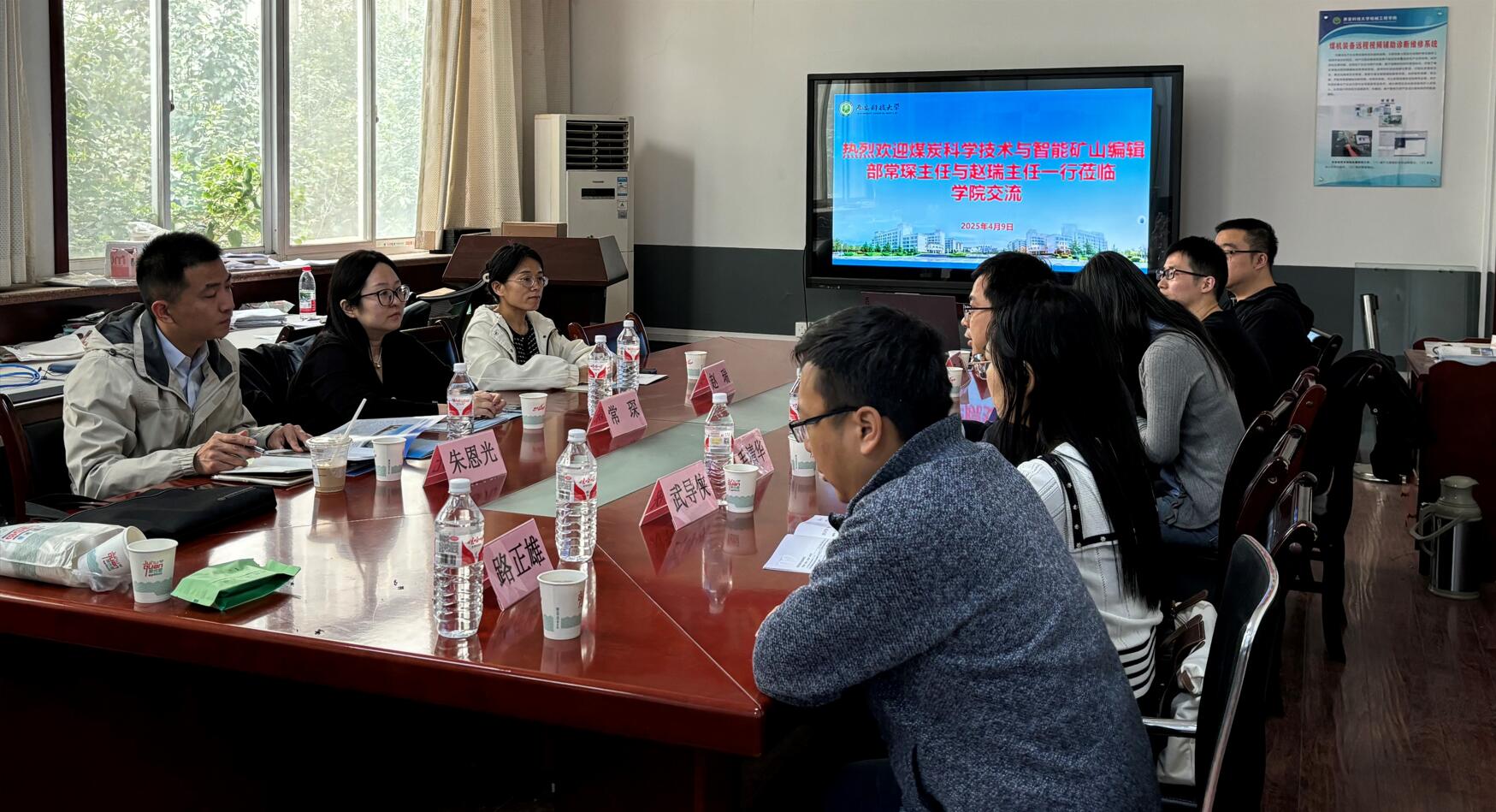 为促进jdb电子游戏官方网站教师对《煤炭科学技术》《智能矿山》的了解,进一步提升学院学术论文质量,加强学院教师与《煤炭科学技术》《智能矿山》的交流合作。4月9日上午,《煤炭科学技术》编辑部主任常琛、《智能矿山》编辑部主任赵瑞、资深编辑朱恩光受邀来jdb电子游戏官方网站交流座谈。座谈会由jdb电子游戏官方网站副院长毛清华主持,jdb电子游戏官方网站院长曹现刚和部分教师代表参加了交流座谈。