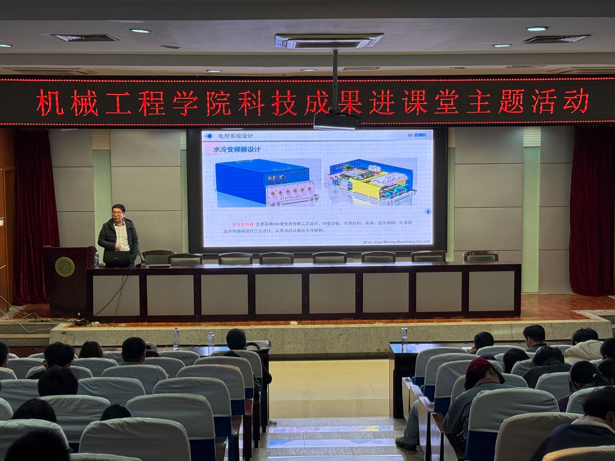 为积极对接国家“十五五”规划对智能制造、能源安全与科技自立自强的战略导向,深入贯彻落实《jdb电子游戏官方网站科研成果反哺教学工作实施管理办法(试行)》《jdb电子游戏官方网站本科生产教融合、科教融汇育人实施办法(试行)》等文件精神,jdb电子游戏官方网站依托陕西省煤矿智能化现代产业学院等平台,将“科技成果进课堂”从构想转化为生动实践,11月3日晚,jdb电子游戏官方网站在图书馆二楼报告厅成功举办“科技成果进课堂”主题活动首场报告会——“煤矿采掘装备智能化”“煤矿装备智能故障诊断与健康维护”。本场讲座由机械电子系和仪器科学系牵头组织,学院首届本硕连读班和机电专业300余名学生参加学习,副院长毛清华教授主持讲座。