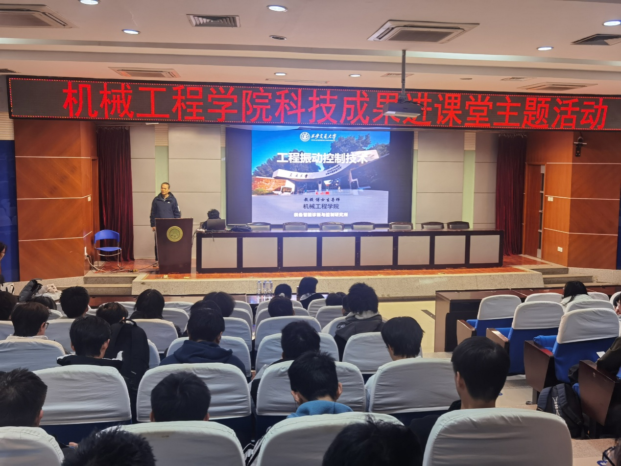 为积极对接国家“十五五”规划中“智能设计与制造”战略导向,深入贯彻落实《jdb电子游戏官方网站科研成果反哺教学工作实施管理办法(试行)》《jdb电子游戏官方网站本科生产教融合、科教融汇育人实施办法(试行)》等文件精神,jdb电子游戏官方网站依托陕西省煤矿智能化现代产业学院等平台,将“科技成果进课堂”从构想转化为生动实践,11月26日晚,jdb电子游戏官方网站在图书馆二楼报告厅成功举办“科技成果进课堂”主题活动报告会——“工程振动控制技术”“掘进工作面智能通风降尘技术及装备研究”。本场讲座由机械设计系牵头组织,学院23级、24级、25级机械设计制造及其自动化卓越、本硕、领军班200余名学生参加学习。机设系主任陈艳主持讲座。