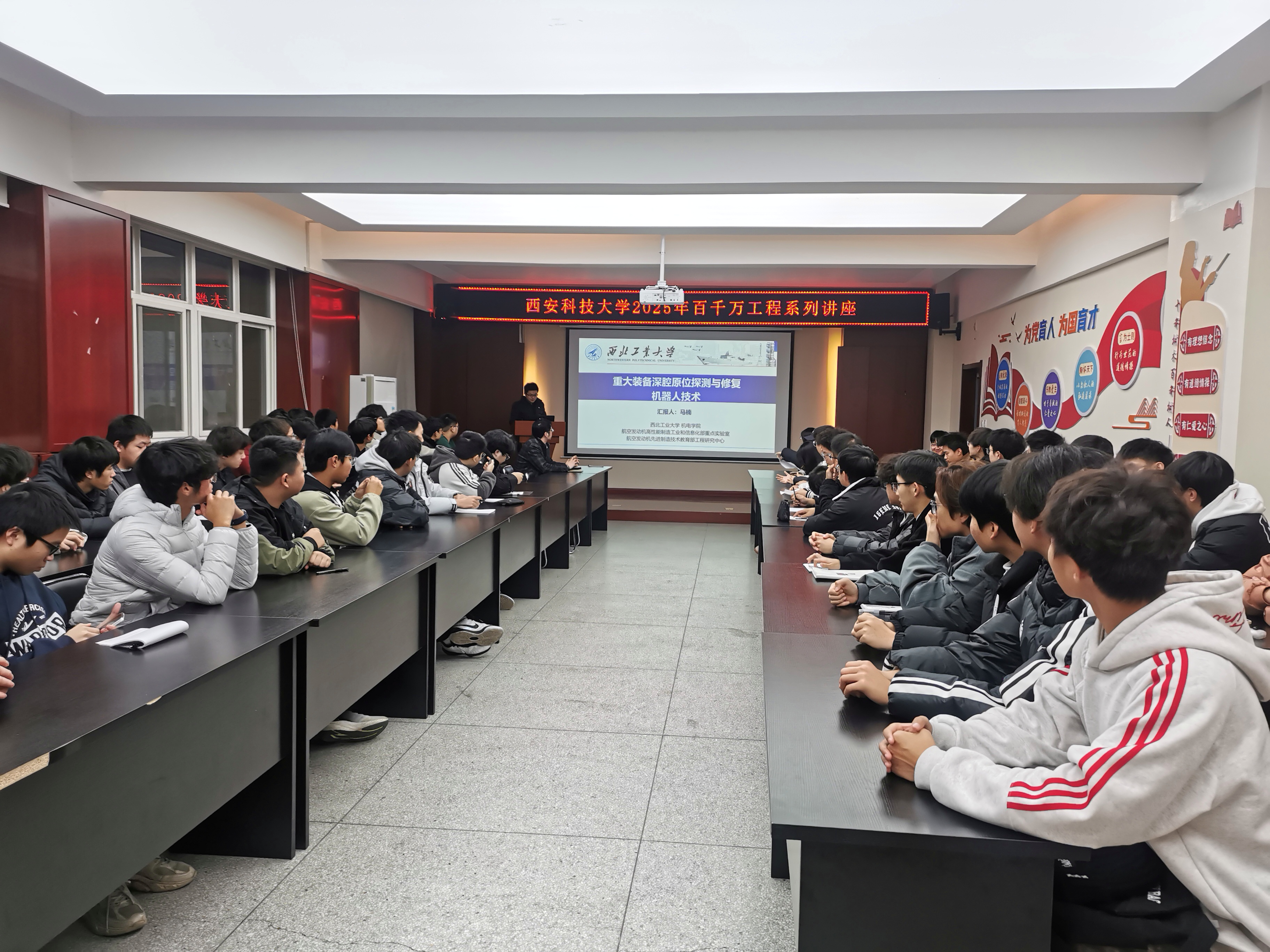为深入贯彻落实《jdb电子游戏官方网站科研成果反哺教学工作实施管理办法(试行)》《jdb电子游戏官方网站本科生产教融合、科教融汇育人实施办法(试行)》以及《关于开展“百千万工程”系列讲座活动的通知》精神,激发学生对科学研究的兴趣、深化学生对科学研究的认知、提升学生的科研水平,加速形成新质生产力。12月4日晚,jdb电子游戏官方网站在骊山校园学院会议室举办“科技成果进课堂”(第五场)暨百千万工程系列报告会。本场讲座由机械制造系牵头组织,特邀西北工业大学机电学院马楠教授作题为《重大装备深腔原位探测与修复机器人技术》学术报告,学院近90名机械设计制造及其自动化(领军)、本硕连读班、机电专业优秀学生代表参加本次学习活动。学院副院长钟斌副教授主持讲座。