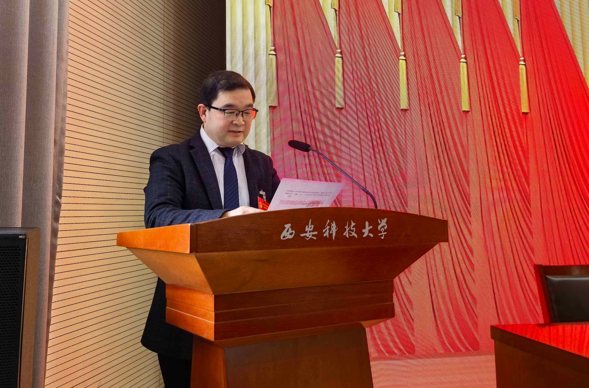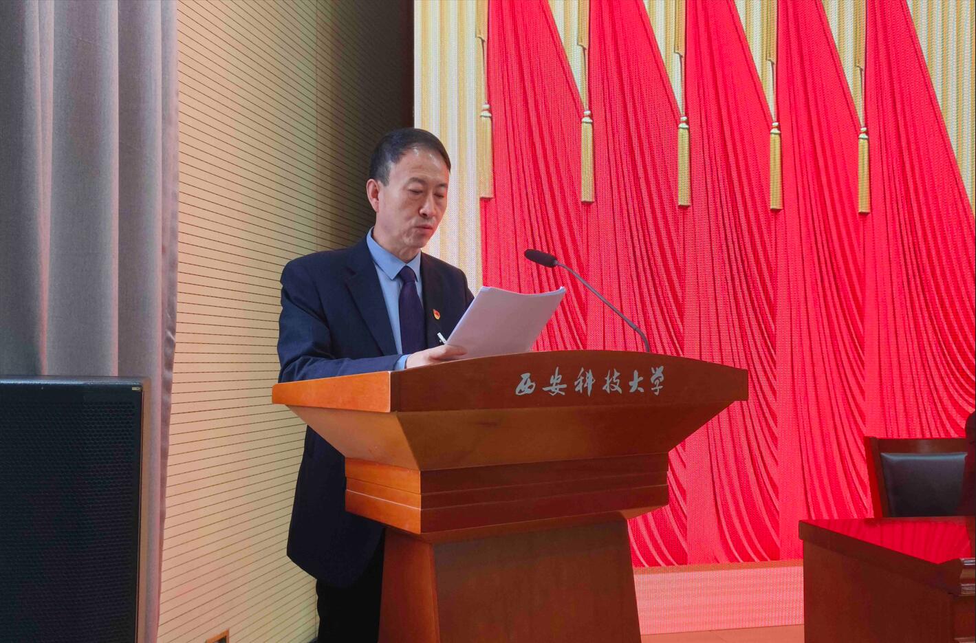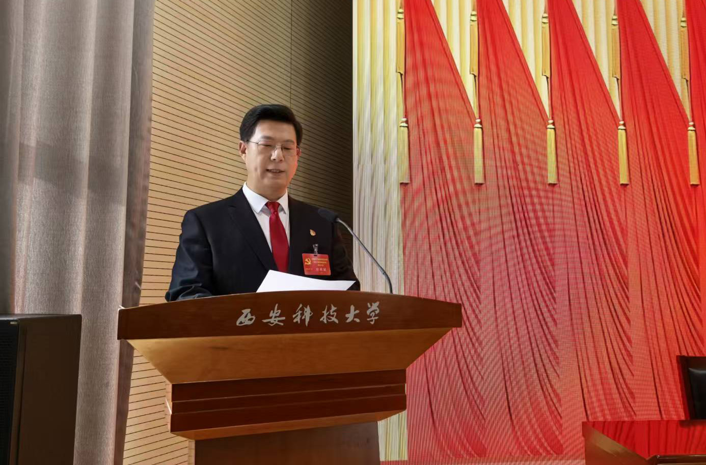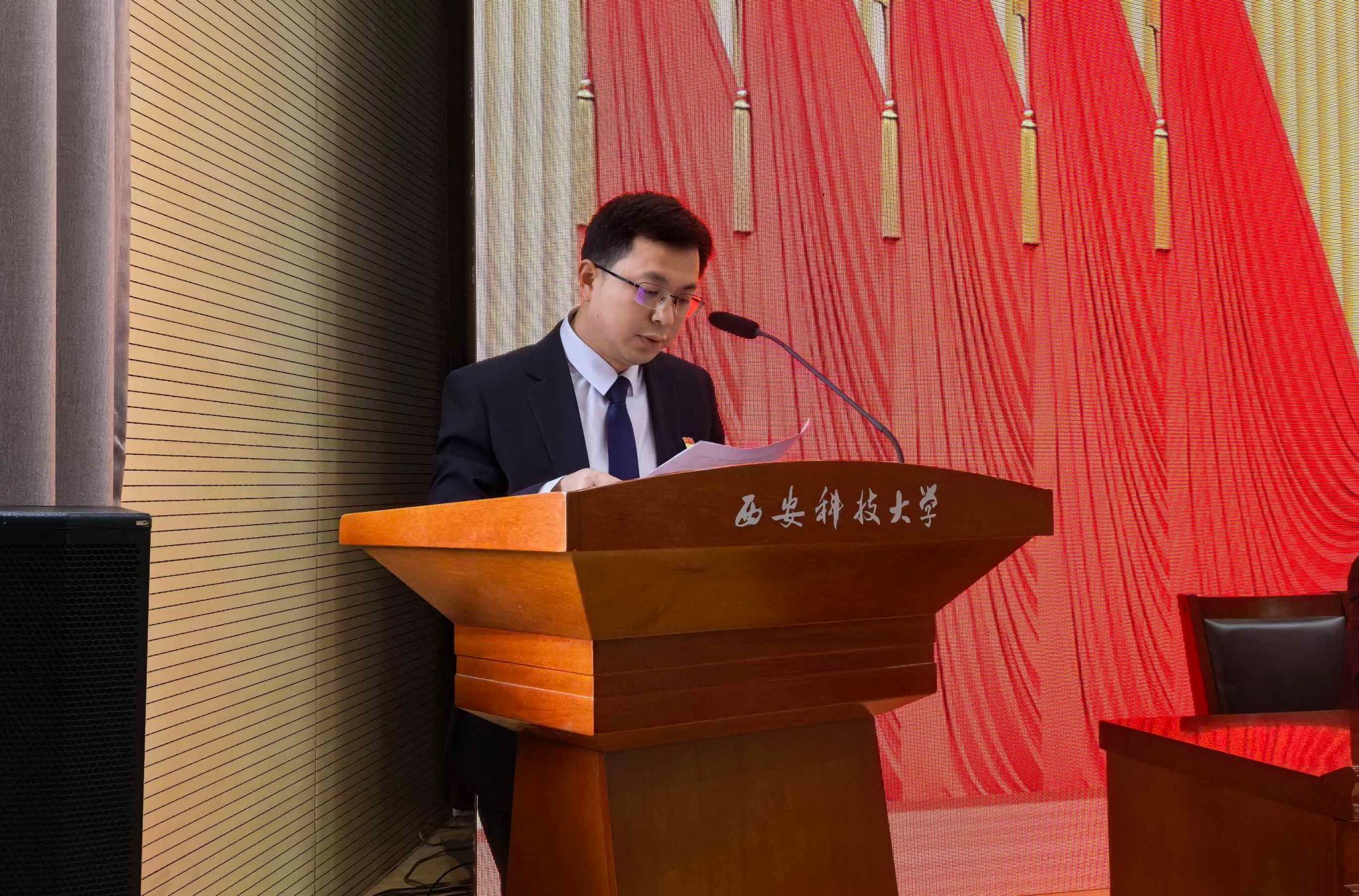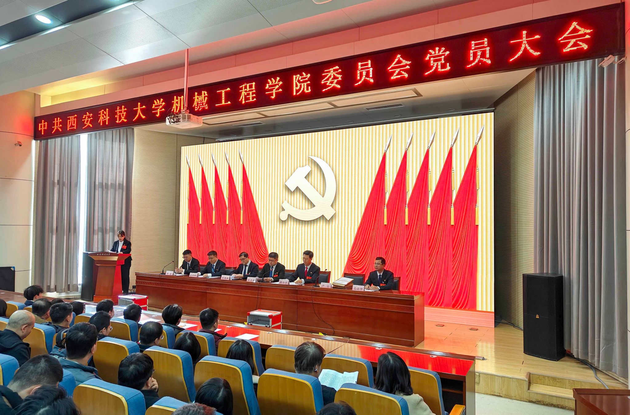 114日下午,jdb电子游戏官方网站“两委会”换届选举大会在雁塔校区北院教学主楼报告厅隆重召开。校党委委员、副校长张金来出席会议并讲话,学院党委委员、纪委委员、领导班子成员,全体正式党员参加会议,学院退休教师代表、无党派人士代表、民主党派人士代表、青年教师和学生党外代表、预备党员代表等列席人员依规参会。大会由学院党委副书记尹弘主持。