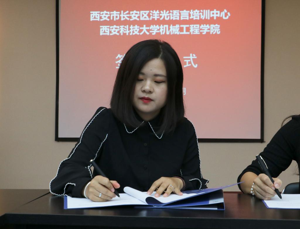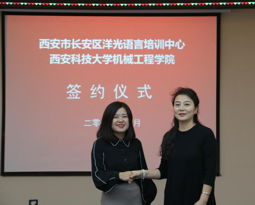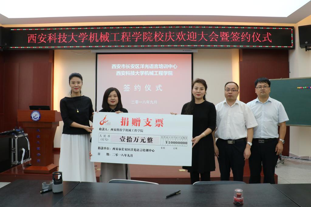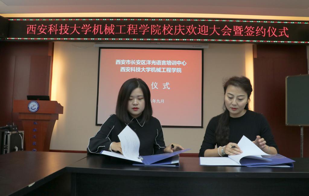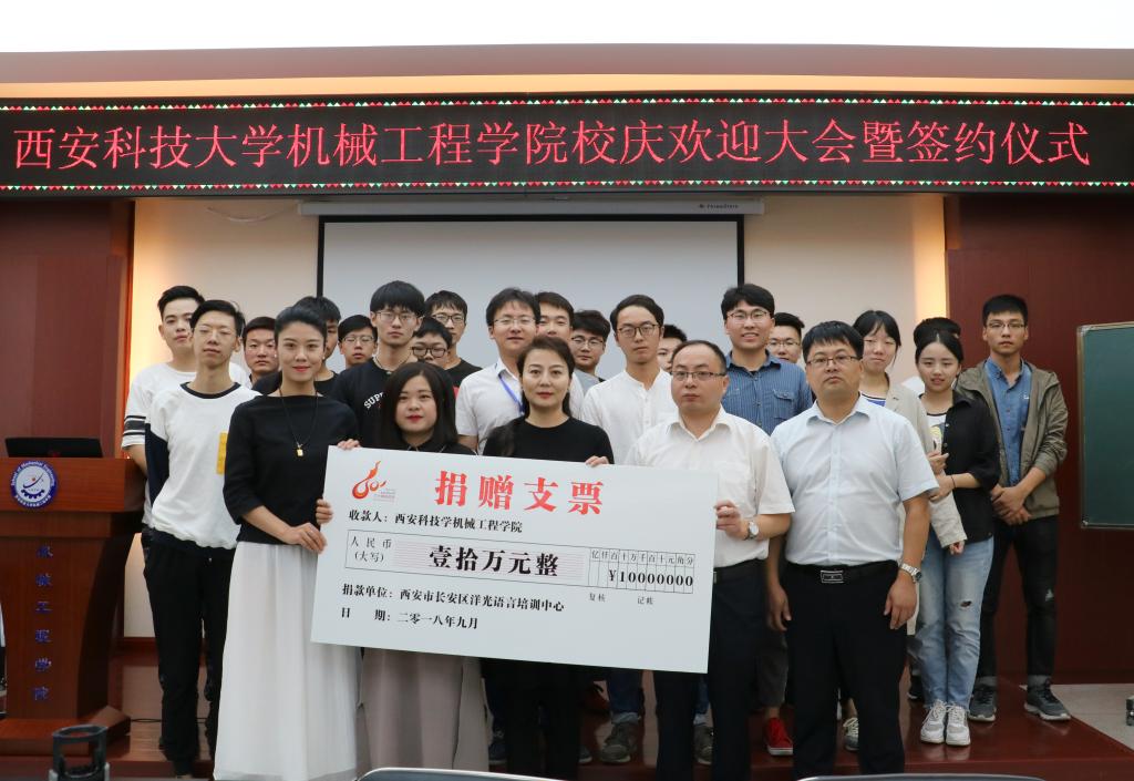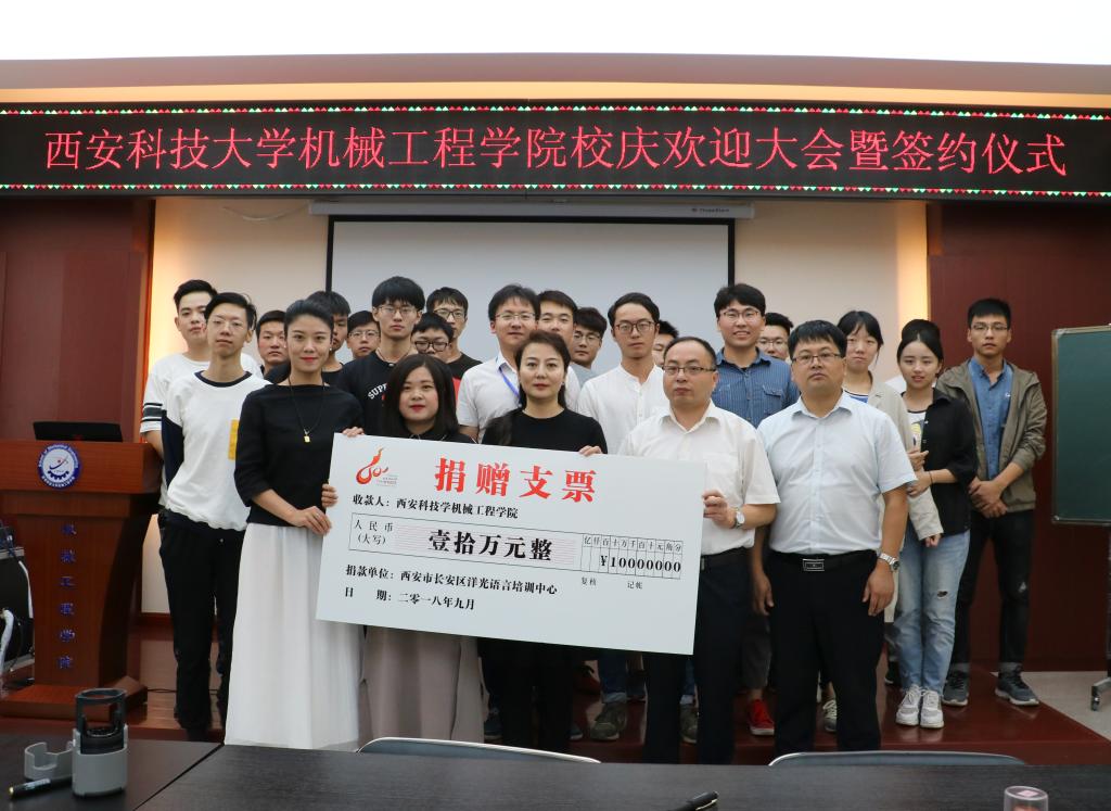 2018年9月14日上午,洋光外语外语培训机构一行人赴jdb电子游戏官方网站签署阳光外语—jdb电子游戏官方网站企业捐赠协议,签约仪式在临潼校区机械学院会议室进行,仪式前双方就人才培养、外语教学等议题进行了友好深入的交流,并由洋光外语培训机构与jdb电子游戏官方网站分别代表两家单位签署了捐赠协议。参会的学院领导有机械学院党委书记汪卫兵、院长张旭辉、党委副书记李婉丽、副院长寇发荣,学院30余名师生也参加了签约仪式。