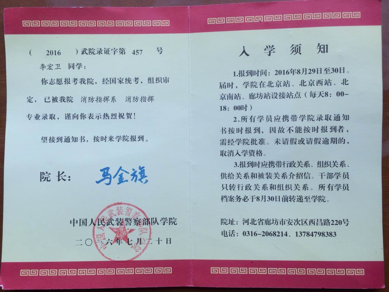 李宏卫,jdb电子游戏官方网站机械设计制造及其自动化1305班学生,于二零一四年九月应征入伍。新训期间先后获得排、连、团级标兵,并在团军姿之星评比中获第三名。下支队后,多次在军事体能业务考核中获“新训先进”。下队后,担任战斗员,多次参与灭火救援任务,并在支队军事业务考核时获第九名。二零一五年五月调至总队,先后担任警卫员、中队通讯员等职,期间获个人嘉奖一次,并于一六年七月被中队确定为入党积极分子。在2016年7月20日经国家统考已被中国人民武装警察部队学院消防指挥专业录取。