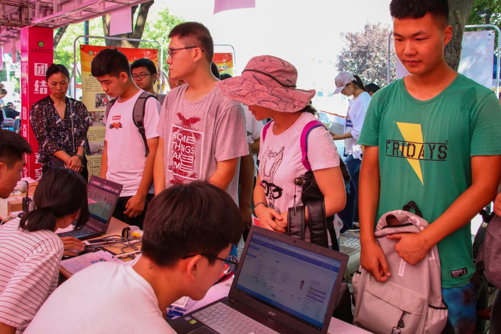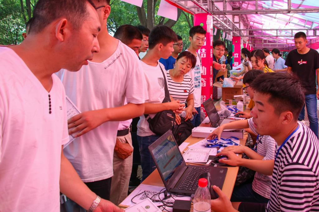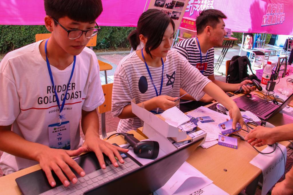 迎新接待处人头攒动,但仍然秩序井然。迎新工作人员用百分百的热情去面对每一一个新生以及家长,积极解决新生的问题 为他们送去温暖。