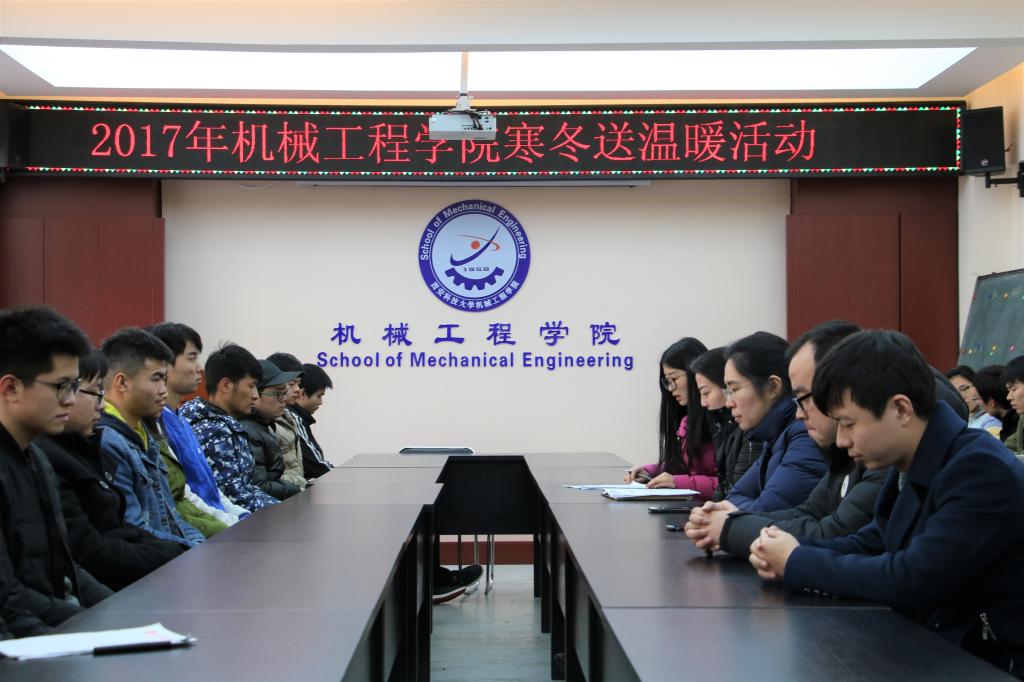 2017年12月18日,为切实解决家庭经济困难的学生寒冬御寒问题,关心和帮助经济困难同学,为他们送去温暖,jdb电子游戏官方网站在十教320会议室举行了寒冬送温暖活动。jdb电子游戏官方网站党委副书记李婉丽老师、各级辅导员老师及受助学生共同参加了此次活动。